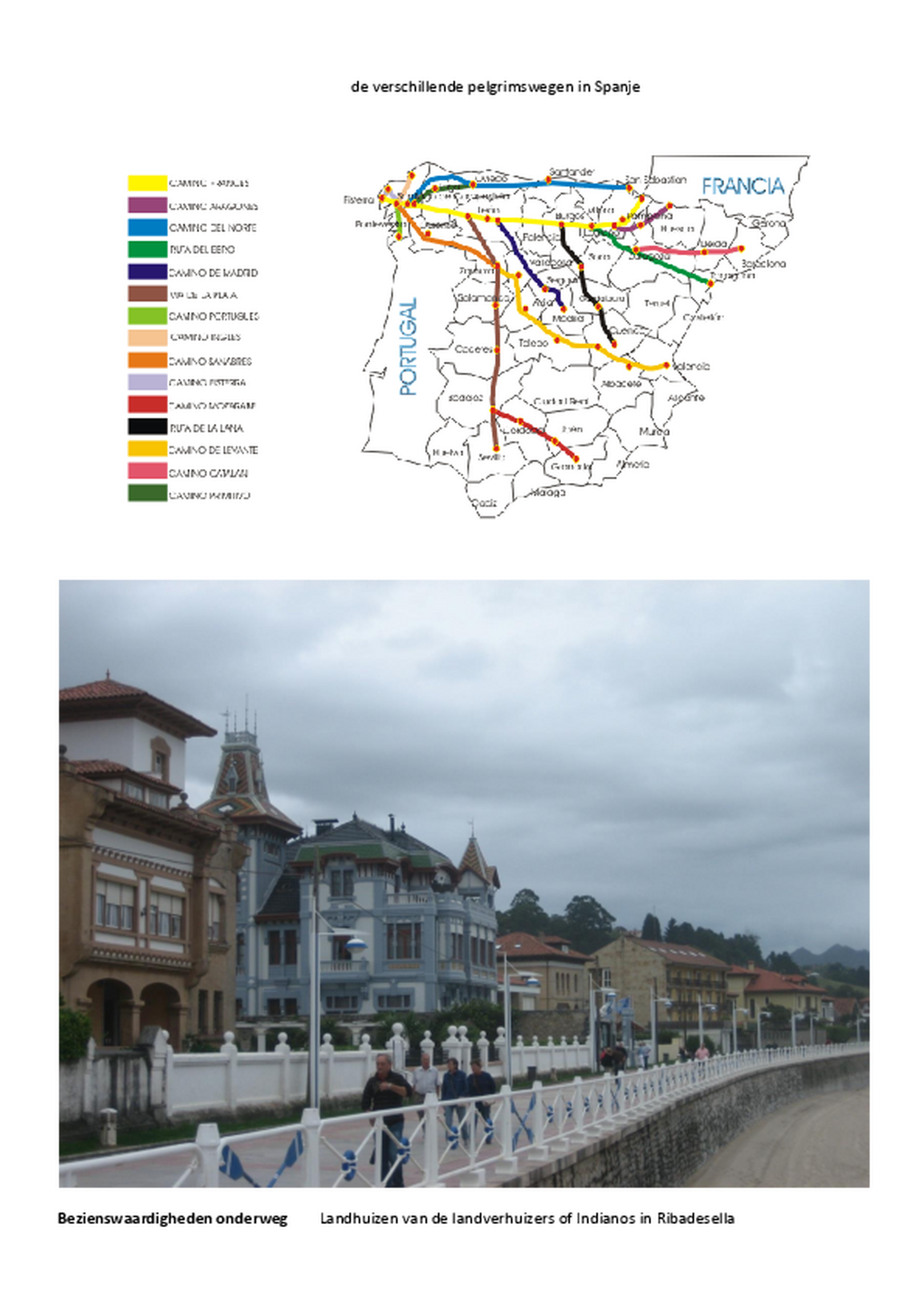 Als vervolg op of in plaats van b.v. de drukke Camino Francés kan de pelgrim besluiten de Camino del Norte van Irun naar Santiago de Compostela te volgen. Ter hoogte van Sebrayo heeft de pelgrim vervolgens de keuze om zijn weg te vervolgen richting Gijon (de officiële Camino del Norte ) of om via Oviedo verder te gaan en de Camino Primitivo te volgen. Deze gids wijst U verder de weg over de Camino Primitivo, met een aanloop route vanaf Bustio/Llanes. De Camino Primitivo is met zijn ong. 350 km prima te doen in een 14 dagen vakantie. De laatste paar jaren wordt de Camino Primitivo vaak gecombineerd met de Camino San Salvador, die begint in Leon, en eindigt in Oviedo. Zie hiervoot ook de gids voor de San Salvador.