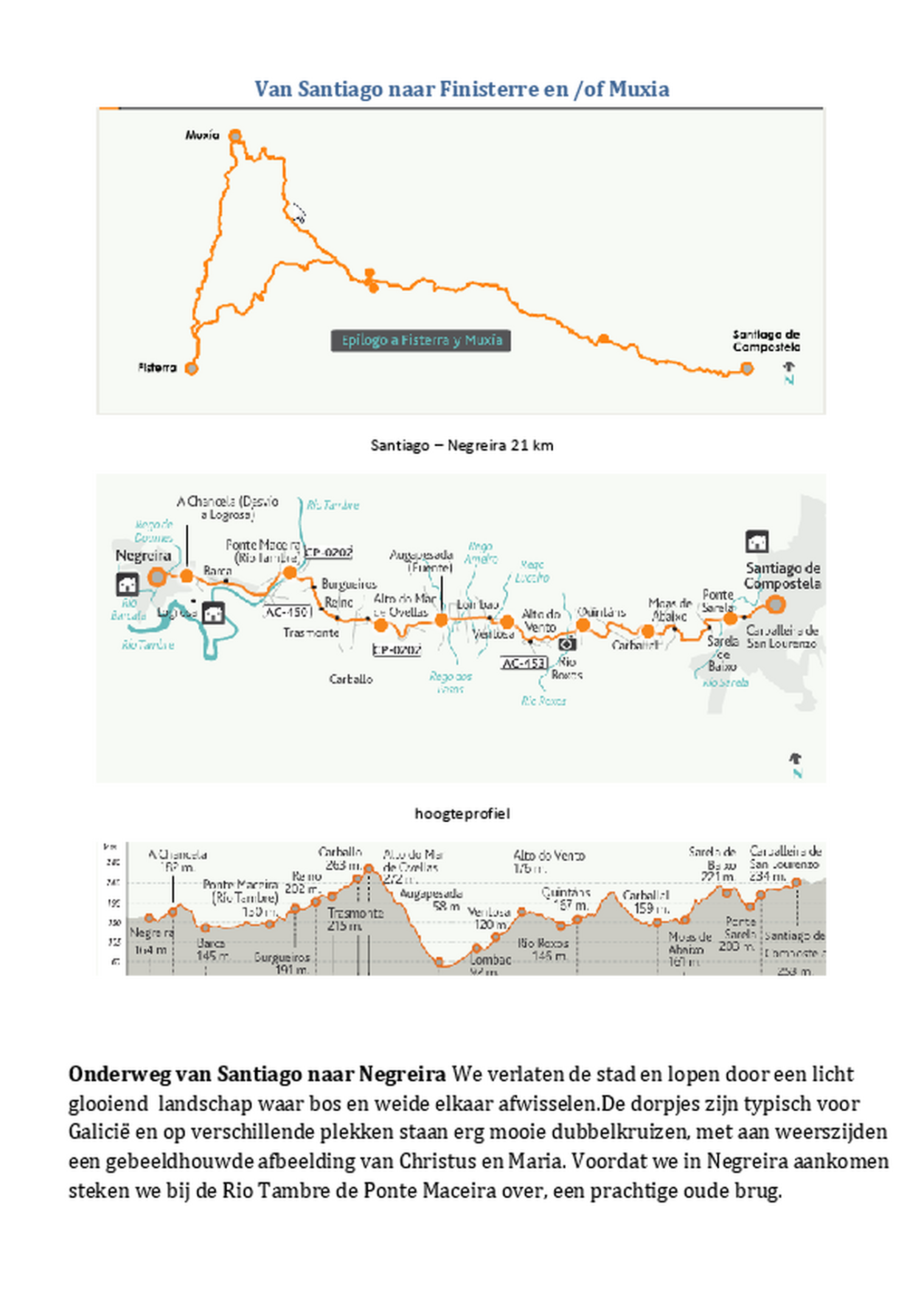 Ter hoogte van San Roman Da Retorta /Lugo kunt U, om een stukje drukte van de Camino Francés waar U al snel opkomt te vermijden, doorsteken naar Sobrados dos Monxes (via Friol/Pardellas). Dit “kost” een dag extra maar U kunt dan wel in het gastvrije en mooie klooster van Sobrados dos Monxes overnachten! Vanaf Sobrados volgt U dan de Camino del Norte richting Arzua en daarna Santiago de Compostela. (Zie hiervoor ook de beschrijving bij de lijst Overnachtingsadressen: Lugo).
