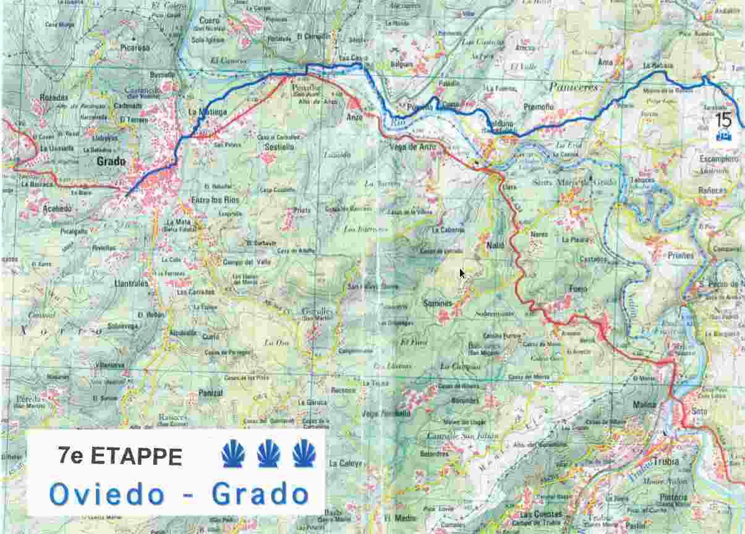 De topografische kaartjes behorende bij deze gids zijn voorzien van de ingetekende routes (en de varianten) en wijzen de pelgrim zijn weg bij aankomst in Asturië, te beginnen met de etappe Bustio-Llanes. Vervolgens is de route naar Santiago opgedeeld in etappes, maar deze kunnen natuurlijk naar eigen inzicht en tempo worden gelopen.